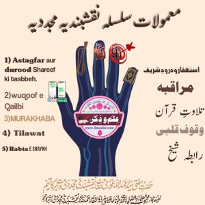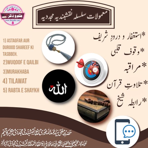 جب کوئی سالک کلمات بیعت پڑھ کر سلسلہ عالیہ میں داخل ہو تو مشائخ کی طرف سے کچھ معمولات بتائے جاتے ہیں۔ جن پر باقاعدگی سے اگر عمل کیا جائے تو بہت سے روحانی امراض کا علاج ہوجاتا ہے،سالک معرفت الہی اور قربِ خداوندی کا حقیقی لطف پاتا ہے اور اس کی زندگی میں ایمانی انقلاب پیدا ہو جاتا ہے۔